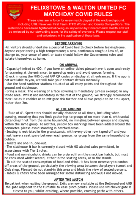 Please read this article for information on the club's Covid-19 plan for junior football and the FA guidelines.