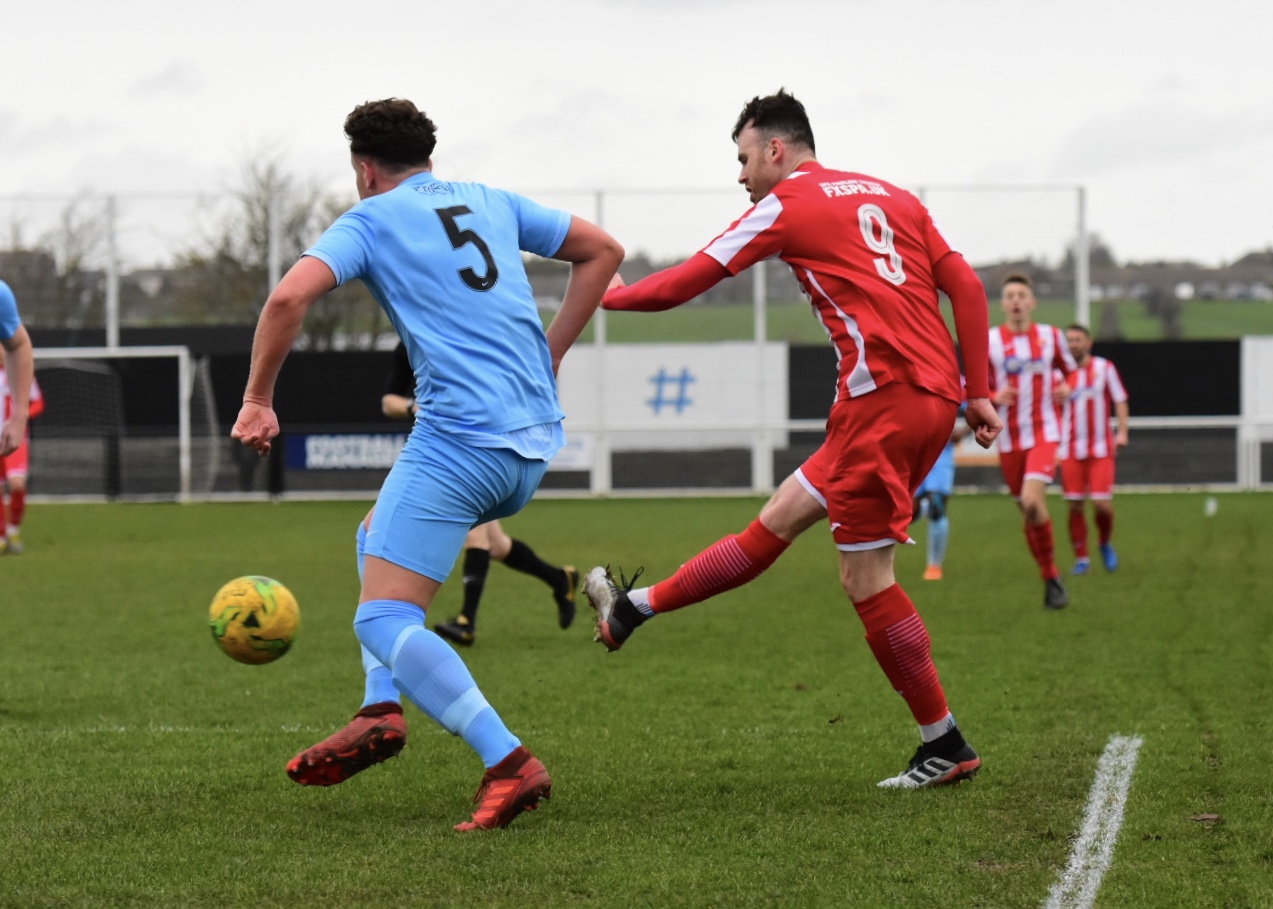 It was the visitors who started the game strongest, Armani Scharr and Ollie Canfer both seeing efforts at goal denied, but on fifteen minutes it was Canfer who opened the scoring, surging into the box from the left after some fine build up play from Stuart Ainsley and Jordan Matthews, to fire the Seasiders into an early lead. Both sides were being hampered by the gale force wind howling around the exposed Chadfields Stadium and it certainly did not help the flow of the game as the play became scrappy at times. Brentwood managed two decent chances during the first half, firing just over the bar when positioned well on both occasions, whilst Jordan Matthews was unlucky not to poke the ball past the goalkeeper when he found space in the six yard box.