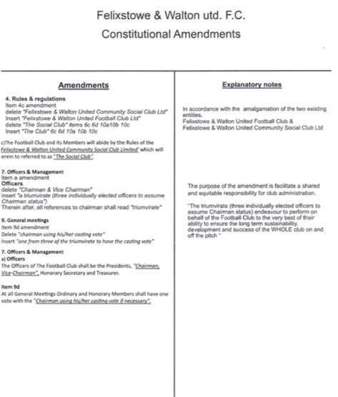 Notice to all Felixstowe & Walton United FC Committee and Club Members.