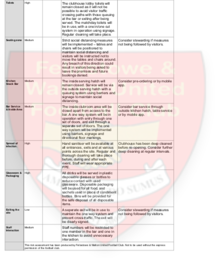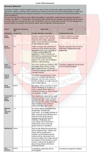 Following the announcement that pubs and other venues in the hospitality sector can re-open from Saturday 4th July if Covid-Secure, the football club is pleased to reveal details of the measures we are putting in place for the safe operation of the site.