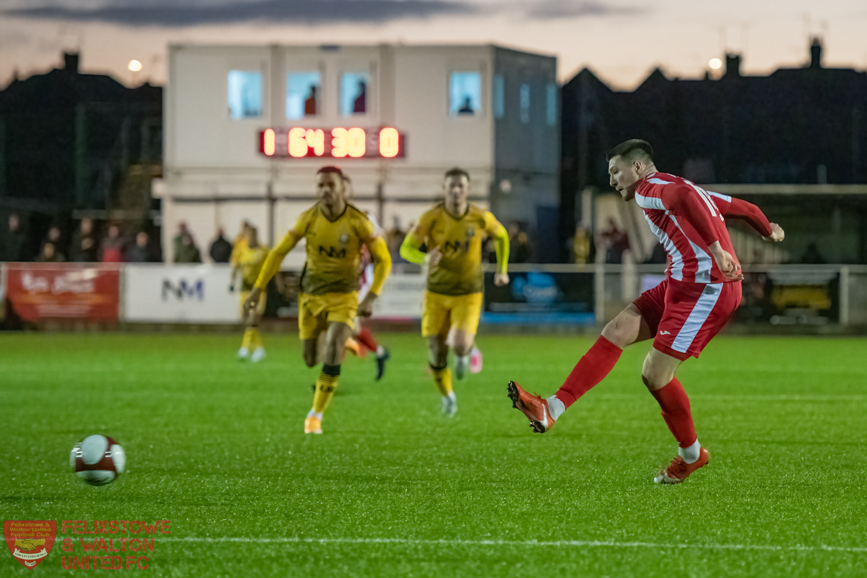 It was a lively start for Felixstowe but the first real chance in the game came from Ryan Wilson for the home side following a free kick, which Man of the Match, keeper Callum Robinson, tipped over the bar. Just 60 seconds later, the home side had another chance to score when they failed to take advantage of a tempting ground level cross from the right. It soon became apparent that they were a decent side, capable of passing the ball around with confidence. Then came the penalty appeal from Ollie Canfer mentioned earlier.