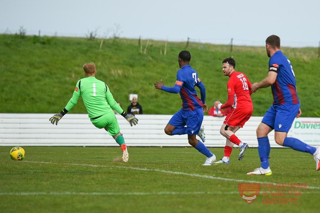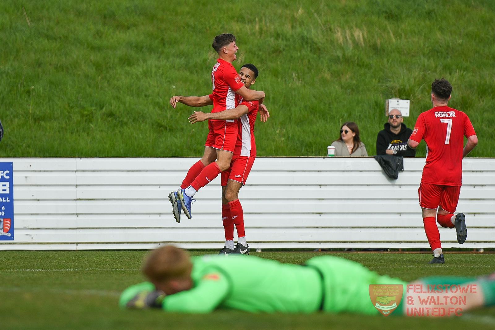 Felixstowe & Walton United produced the performance of the season this afternoon to demolish Maldon & Tiptree 5-1 away from home, in doing so sealing a place in the end of season Isthmian North playoffs with a guaranteed fifth place finish. Sam Nunn and Joe Whight had Felixstowe in control at half time and steamrollered the home side in the second half with goals from Ollie Canfer, Joe Whight and Kieran Twinn before a late consolation for Maldon.