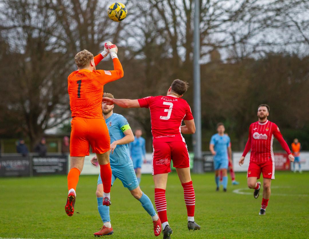 Felixstowe & Walton United made it 28 points from 30 at home this season with a 2-0 home victory over last seasons losing playoff finalists Brentwood Town. The stubborn and lively visitors had the best of the first half an hour but a George Clarke header on 33 minutes turned the match in Felixstowe’s favour and a Josh Hitter Free kick on 64 minutes settled the outcome and sent the Seasiders up to fifth place in the Isthmian North.