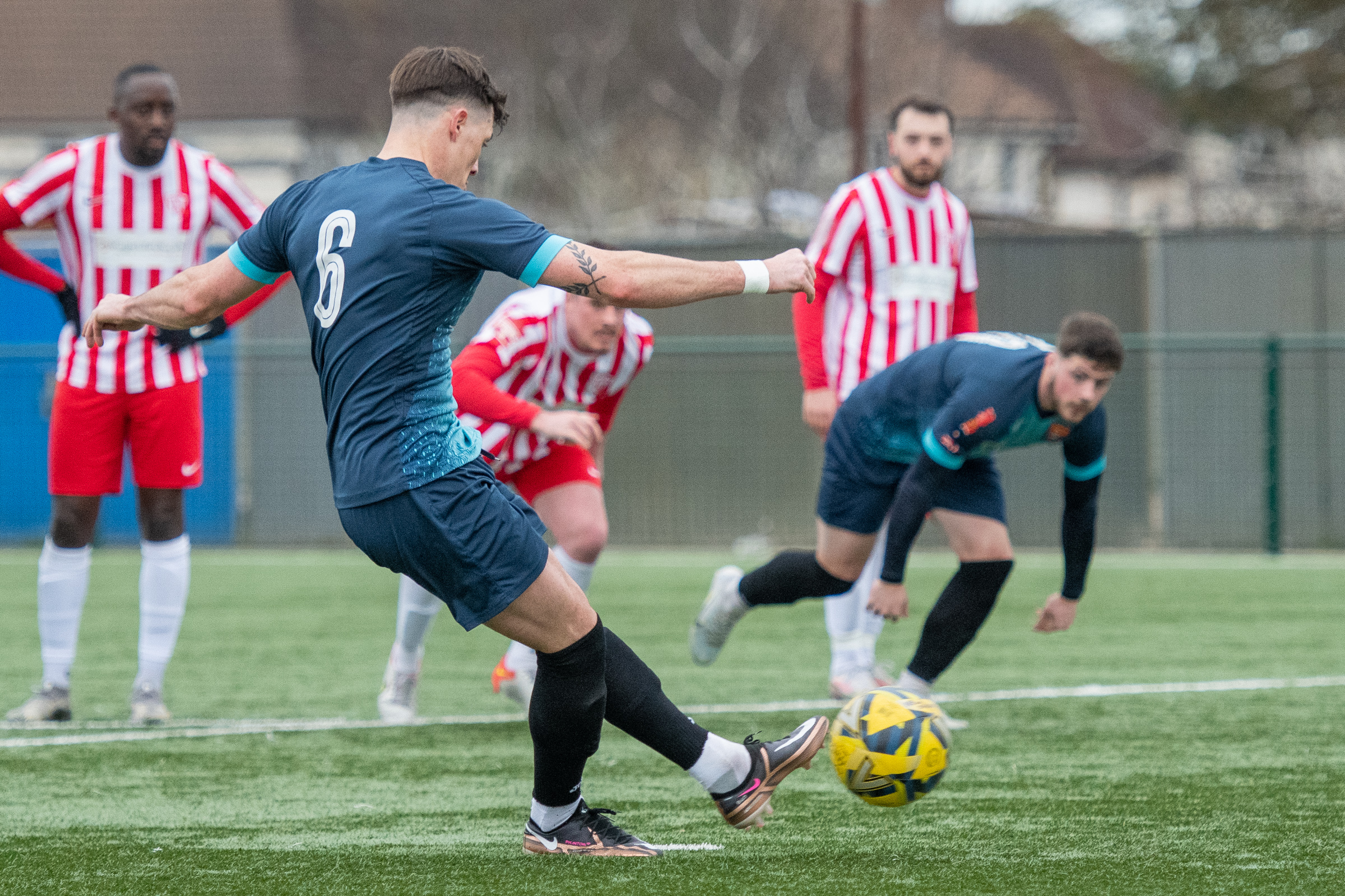 Felixstowe started brightly on the 3G surface of Haringey Borough, but often found the final pass lacking when moving forward. New Salamis were playing on the break with Remi and Mandla looking particularly dangerous with their pace. Mandla headed tamely wide on 7 minutes before Noel Aitkens was denied at the near post with a challenge preventing his shot hitting the target. Callum Harrison curled a free kick round the wall and just past the post on 12 minutes, then one of the home sides quick breaks found a gap on the right to allow Remi to slam the ball in from close distance. Aitkens sent over a wonderful cross from deep on the right shortly after, it found Fennell in the box, he took the ball down well, turned and shot but was denied by a last gasp block. Despite all their possession and passing football, it was the home side who again stunned the away support on 25 minutes as they took a two-goal lead, Felixstowe again unable to defend a break on the right and Ryan Hervel slammed the ball home from 15 yards. The Seasiders went close twice on 30 minutes, firstly a cross heading for Fennell was headed backwards by a defender and missed the goal frame by inches, and then Billy Holland saw his header tipped over the bar from the resultant corner. Joe Whight headed narrowly wide on 42 minutes but he was soon on the scoresheet, the assistant referee flagging for a clear handball from a corner as the referee blew the half time whistle. Salamis protests went overboard, as had been the case all afternoon, but Joe Whight stepped up and halved the deficit.