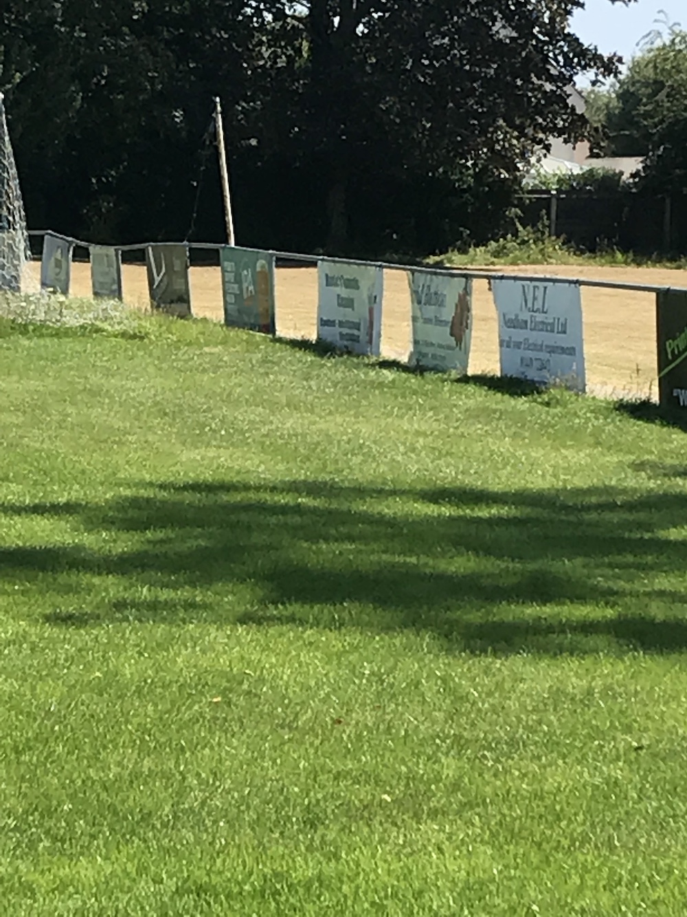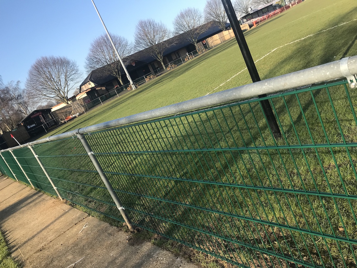 By Tuesday evening’s Suffolk Premier Cup victory over Hadleigh, most of the new post and rail system had been concreted in place. The old spectator railings were uneven and leaning over (pictured with signage attached). The new ones have been installed slightly taller (1.1m is the recommended height) and this gives a more comfortable height to lean on.