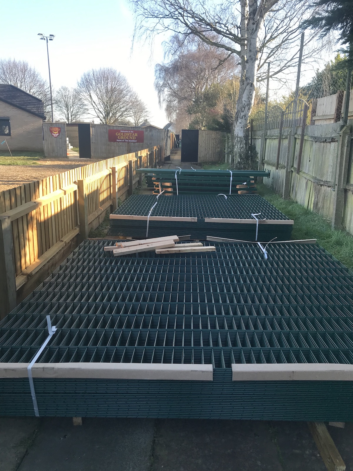 Thursday morning also saw delivery of the posts and mesh panels for the new fencing to be installed at either end of the ground to further enclose the ground and creating training areas behind.